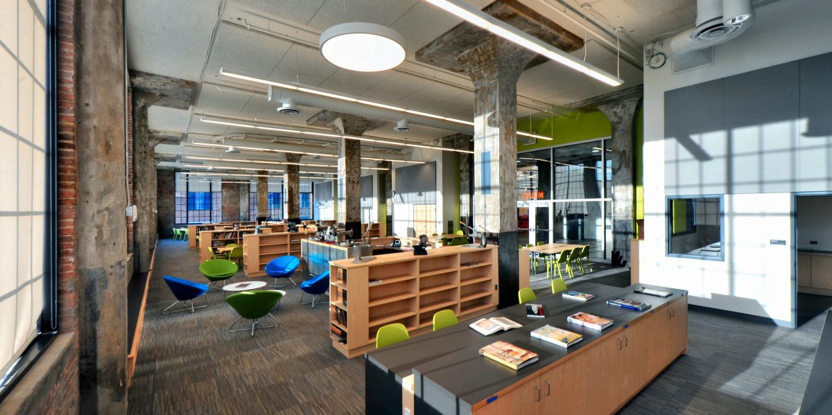 The 115,000-square-foot award-winning building was purchased by BDS, Inc. in 2010 and renovated for the use as the Baltimore Design School. The factory building was designed by local architectural firm Ziger/Snead, and redeveloped by Seawall Development Corp as part of a $26.5 million project to repurpose the site for a school. The groundbreaking for the school was slated to take place on May 7, 2013 and the school was opened for the 2013-2014 school year. The building, dating back to 1915, tells a long Baltimore story. It was first home to the Crown Cork and Seal Company, legendary inventors of the bottle cap. In the 1970s, the building was converted to a factory for the Lebow Bros. to manufacture men’s suits. Its doors were shuttered in 1985 and the site remained abandoned until BDS was founded in 2010.