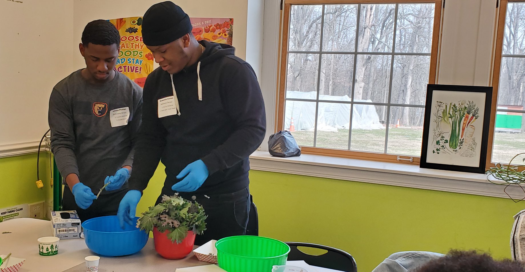 A group of BDS students joined students from a few other BCPSS high schools for the first African American Foodways Summit at Great Kids Farm yesterday! Students participated in panel discussions on food access, food waste and the history of the foods we eat in Baltimore today. They attended workshops on Afroecology, Black Farming, Food as Medicine, and more. Carleen From City Schools and Sache from No Boundaries Coalition hosted Jammin’ for Justice where students not only learned about advocacy, but also learned how to make strawberry jam which they were able to take home. Crystal Foreman of Holistic Wellness and Health lead a cooking workshop which tied in food nutrition to health and wellness. She lead an activity where students used organic vegetables from Great Kids Farm to make a delicious kale salad. Mecca Verdell of DewMore poetry led a poetry workshop for the students which yielded beautiful work from our BDS students who participated.