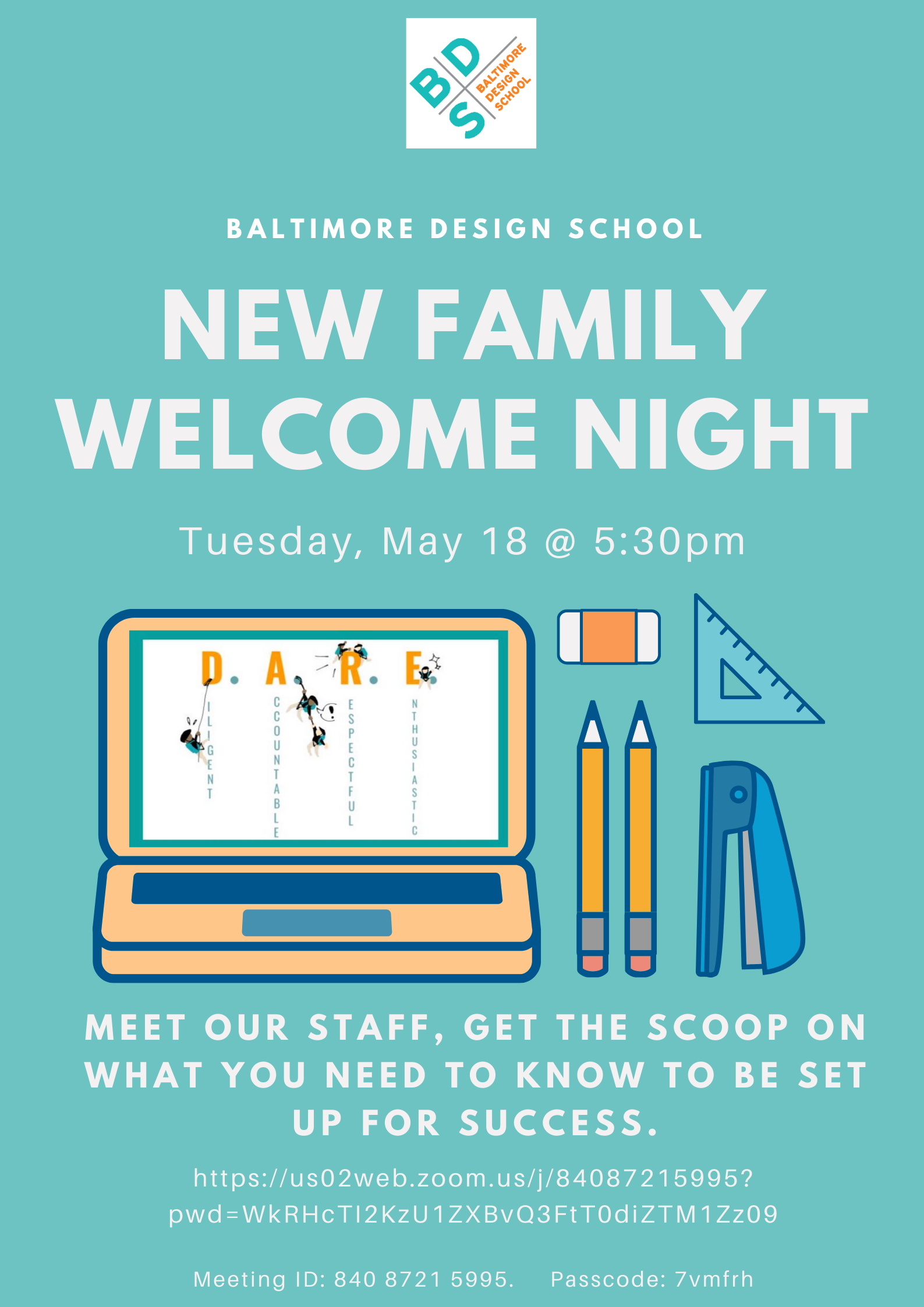 View All Events Events Tuesday, May 18th, 2021 BDS 2021/22 New Family Welcome Night! Date and Time Tuesday, May 18th, 20215:30 pm - 6:30 pm Previous Post Family Meeting with Mr. Brozene for students scheduled to return to in-person learning Next Post High School Virtual Welcome Night - Principal Brozene talks with families about what to expect. - August 25 @ 5:30pm